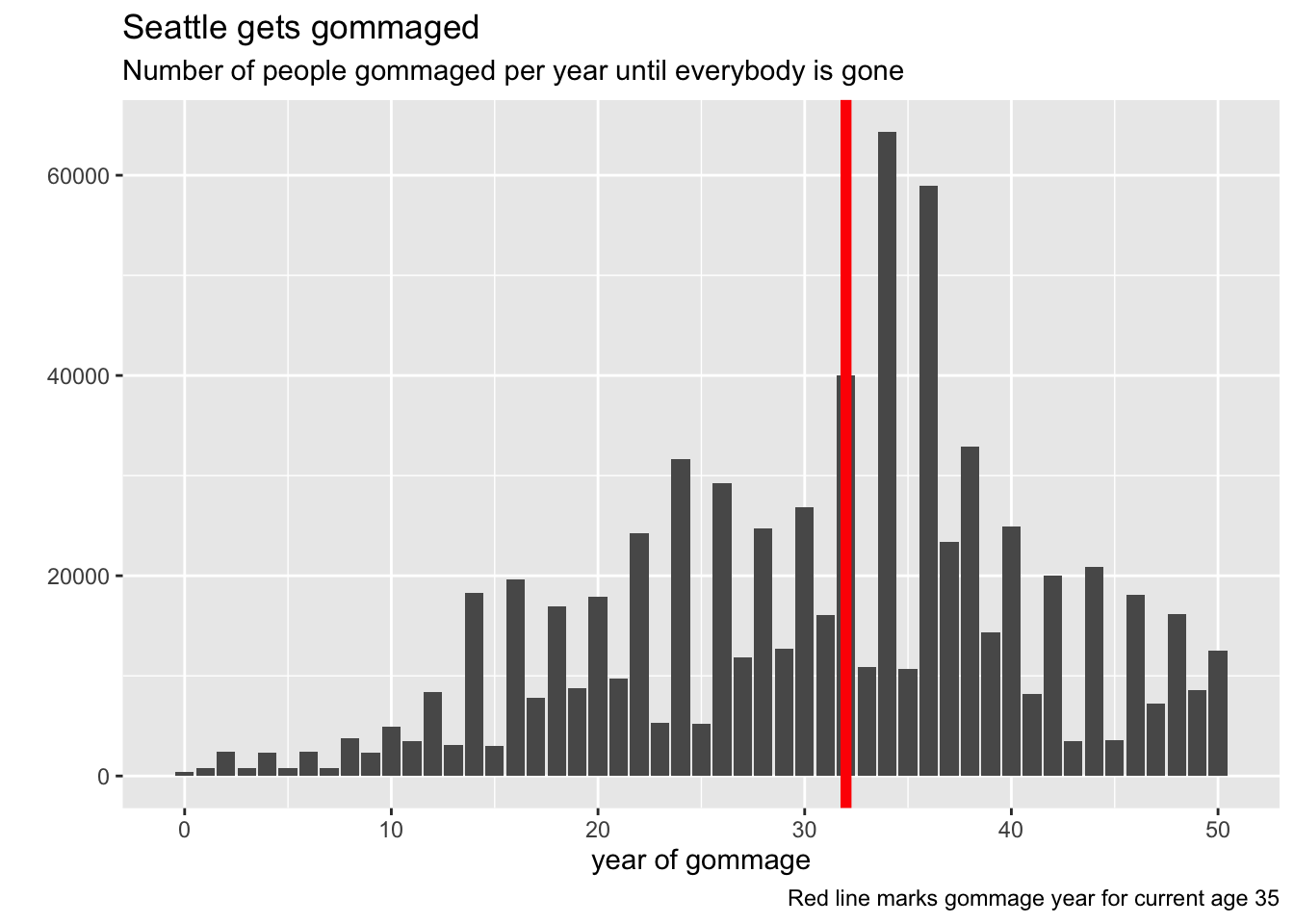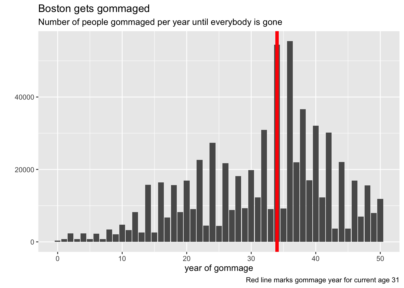 labs(caption = glue::glue("Red line marks gommage year for current age {highlight}"))
